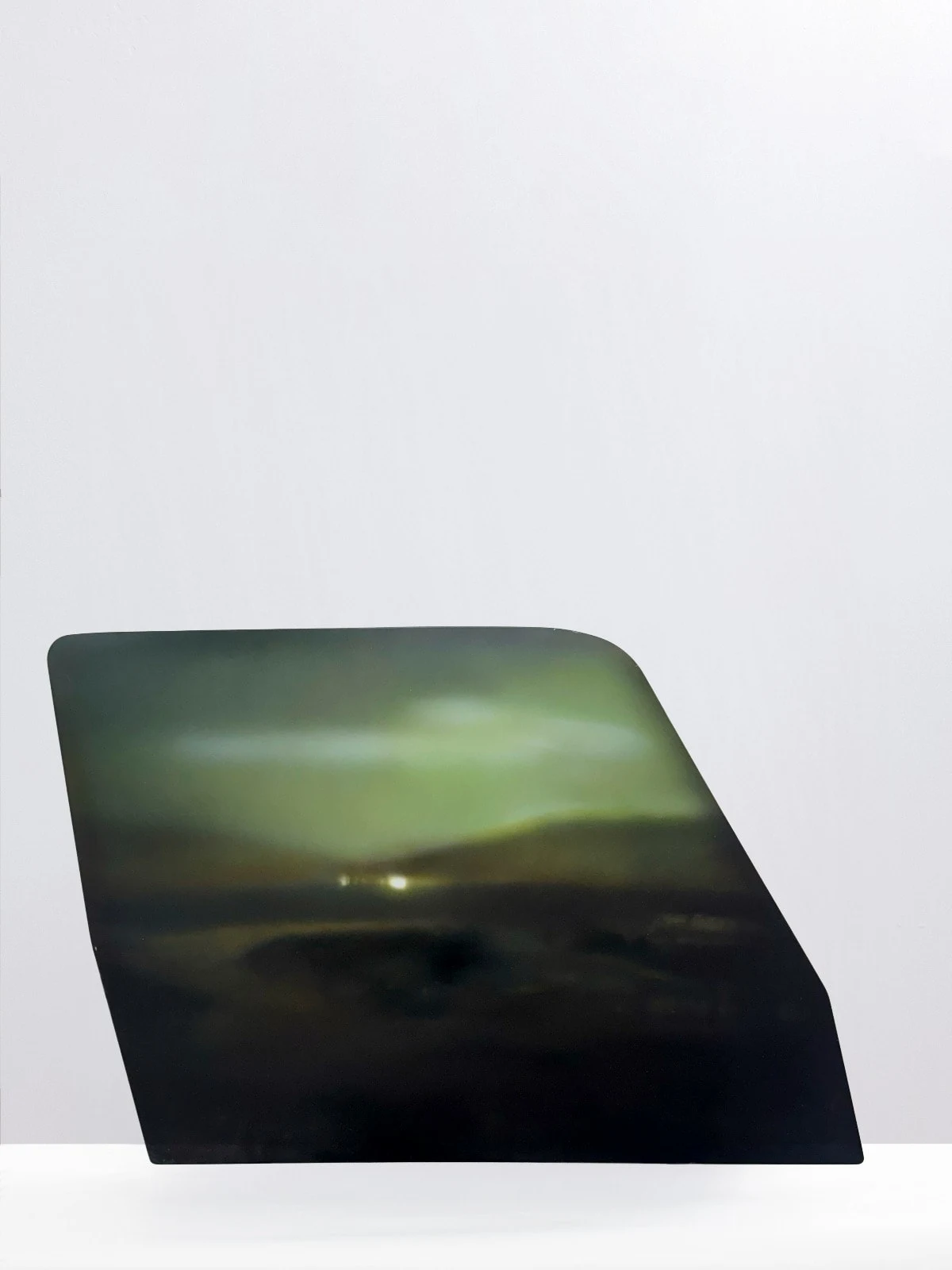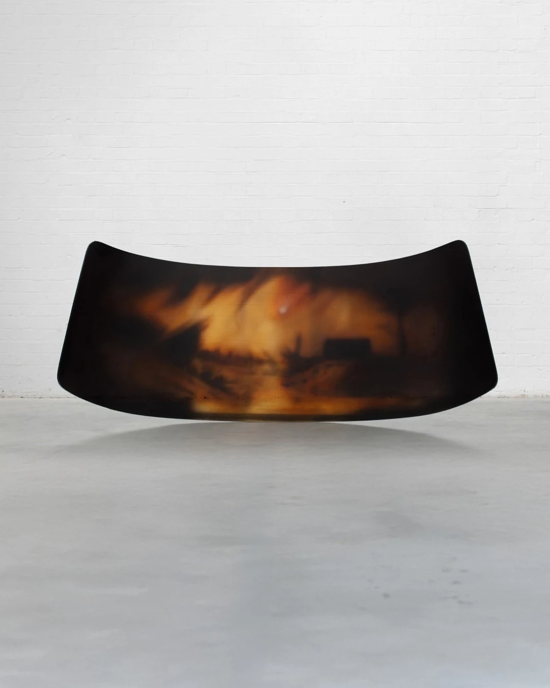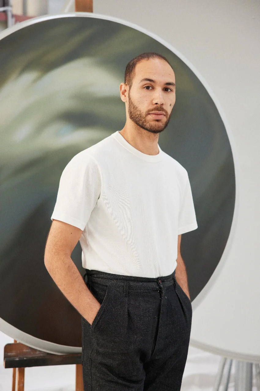 Les gestes qu’il met en place trouvent leurs origines dans une culture du détournement des objets et des techniques inventées pour mieux brouiller les pistes. Sa peinture, réalisée par couches successives, à la manière des strates du temps, développe une esthétique du flou et cultive l’opacité, le mystère des images qu’il crée. Dans ce travail de projection peinte, l’air renvoie au souffle à l’origine des narrations. Chemsedine s’inscrit dans la tradition du sfumato tout en renouvelant la technique et les supports. Leur brutalité, issue d’éléments de l’architecture industrielle urbaine, dialogue avec la peinture afin de renforcer le contraste des sujets. Les surfaces miroitées, les images floutées, se dessinent dans la concrétude du carreau de plâtre, du bloc de pierre calcaire ou de la tôle d’acier. Les ciels célestes s’incarnent en creux des antennes paraboliques terrestres. La récurrence du motif elliptique résonne avec sa forme littéraire, voyage dans le temps. C’est dans cet état perpétuel de projection, de Cosa mentale au sens que Léonard de Vinci lui a conféré – la chose de l’esprit qu’il conduit sa pensée. Dans cette volonté, son travail poursuit sa trajectoire vers des installations monumentales où l’échelle architecturale témoigne de l’expérience du temps.
